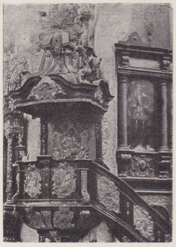 Kościół pocysterski, Ambona, XVIII w. Na prawo portret Mszczuja II, 1613 r.