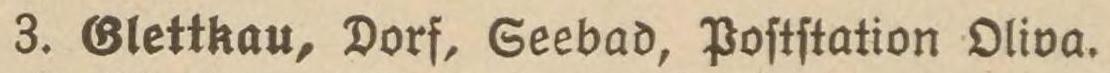 ULICE: Abbau Poggenkrug, Glettkau. ![]() Amtsvorsteher: Max Witt, Saspe. Stellvertreter: Fr. Braunschweig, Weißhoff. Gemeindevorsteher: Hoeberlein, Rothof Saspe. Stellvertreter: J. Schröttke. Schöffen: Joh. Schröttke, Theod. Kreft. Gemeindediener: Joh. Malewski. Armencommissions-Vorsteher: Joh. Kalkning, Wiesenroth. Standesbeamter: Boritzki, Conradshammer. Lehrer: Lewandowski. Ralte Seebäder: R. Kamerke. Sehenswürdigkeiten: Bildergalerie von Johann Kalkning, Rentier. ![]() ![]() Alphabetisches Einwohner-Verzeichniß. ![]() A Aktun, Franz, Arbeiter und Eigenthümer. Glettkau 13. Ast, Johann, Arbeiter. Glettkau 28. ![]() B Benke, Gustav, Fischer und Eigenthümer. Glettkau 22. Bresinski, Julius, Seefahrer. Glettkau 6. ![]() D Dahms, August, Arbeiter. Glettkau 27. Duschke, Jacob, Arbeiter. Glettkau 14. ![]() G Gentz, Franz, Arbeiter. Glettkau 10. Grabinski, August, Arbeiter. Glettkau 28. Grabinski, Carl, Seefahrer. Glettkau 28. Grabinski, Johann, Fischer. Glettkau 28. Gradulewski, Jul., Bahnwärter. Abbau Poggenkrug. Gronau, Johann, Arbeiter. Glettkau 23. Gube, August, Arbeiter. Glettkau 10. Gurski, Joseph, Arbeiter. Glettkau 8. ![]() H Hinz, Amalie, Schneiderin und Eigenthümerin. Glettkau 28. Hullmann, Johann, Arbeiter. Glettkau 13. Hullmann, Joseph, Arbeiter. Glettkau 9. Hullmann, Paul, Fischer. Glettkau 8. ![]() K Kalkning, Hermann, Landwirth u. Eigenthümer. Glettkau 3. Kalkning, Johann, Rentier und Eigenthümer. Glettkau 2. Kamerke, Reinhold, Gastwirth und Eigenthümer. Glettkau 7. Kanefke, Carl, Fischer. Glettkau 16. Kanefke, Johann, Fischer. Glettkau 25. Kanefke, Max, Fischer. Glettkau 21. Kapitkowski, Joseph, Arbeiter. Glettkau 8. Kirchleitner, August, Gastwirth. Glettkau 1. Kreft, I Carl, Fischer. Glettkau 26. Kreft, II Carl, Seefahrer und Eigenthümer. Glettkau 27. Kreft, III Carl, Fischer. Glettkau 15. Kreft, Ernst, Fischer. Glettkau 11. Kreft, I Friedrich, Fischer und Eigenthümer. Glettkau 18. Kreft, II Friedrich, Fischer. Glettkau 17. Kreft, Johann, Seefahrer. Glettkau 6. Kreft, Johann, Fischer und Eigenthümer. Glettkau 15. Kreft, Josef, Fischer und Eigenthümer. Glettkau 17. Kreft, Paul, Fischer. Glettkau 16. Kreft, Richard, Fischer. Glettkau 12. Kreft, Theodor, Fischer und Eigenthümer. Glettkau 19. Kreft, Susanne, Eigenthümerin. Glettkau 16. Krüger, Johann, Seefahrer. Glettkau 27. Krüger, Rosalie, Arbeiterin und Eigenthümerin. Glettkau 25. Kurowski, Anton, Fischer und Eigenthümer. Glettkau 21. Kuhr, Walter, Kaufmann. Glettkau 4. ![]() L Lewandowski, Paul, Lehrer. Glettkau 20. ![]() M Melowski, Franz, Fischer. Glettkau 19. Melowski, Joseph, Fischer. Glettkau 18. Metz, Carl, Schiffszimmermann u. Eigenthümer. Glettkau 5. Mischkowski, August, Arbeiter. Glettkau 8. Mroch, Carl, Seefahrer. Glettkau 12. ![]() O Oschnewski, Joseph, Arbeiter. Abbau Poggenkrug. ![]() P Preuß, Albert, Fischer. Glettkau 28. Preuß, Johann, Fischer. Glettkau 4. Preuß, Ludwig, Seefahrer. Glettkau 23. Preuß, Otto, Fischer. Glettkau 22. Poller, Martin, Arbeiter. Glettkau 9. Posanski, Rudolf, Fischer. Glettkau 26. Posanski, Maria, Cigenthümerin. Glettkau 14. Posanski, Maria, Fischerfrau u. Eigenthümerin. Glettkau 26. ![]() R Richart, Johann, Arbeiter. Glettkau 14. Richart, Joseph, Arbeiter. Glettkau 10. Richert, Xaver, Arbeiter. Glettkau 27. Rutkowski (Rutowski), Jos., Landw. u. Eigenth. Abbau Poggenkrug. ![]() S Sauer, Egbert, Gasthausbesiker u. Eigenthümer. Glettkau 1. Scheibe, Facob, Fischer und Eigenthümer. Glettkau 11. Schröttke, Bernhard, Seefahrer. Glettkau 21. Schröttke, Johann, Fischer und Eigenthümer. Glettkau 23. Schröttke, Jojeph, Fischer. Glettkau 24. Schröttke, Julius, Fischer und Eigenthümer. Glettkau 24. Steffan, Carl, Fischer. Glettkau 26. Steffan, Carl, Arbeiter. Glettkau 27. Stobbe, August, Arbeiter. Glettkau 8. ![]() T Trieder, Joseph, Tischler. Abbau Poggenkrug. Tudding, Joseph, Fischer. Glettkau 10. ![]() V Völkner, Anton, Schmied. Abbau Poggenkrug. ![]() Abbau Poggenkrug Gradulewski, Jul., Bahnwärter (dró¿nik). Oschnewski, Joseph, Arbeiter (robotnik). Rutkowski (Rutowski), Joseph, Landwirth und Eigenthümer (rolnik i w³aciciel). Trieder, Joseph, Tischler (stolarz). Völkner, Anton, Schmied (kowal). ![]() Glettkau 1 Kirchleitner, August, Gastwirth (karczmarz). Sauer, Egbert, Gasthausbesiker und Eigenthümer (w³aciciel karczmy). Glettkau 2 Kalkning, Johann, Rentier und Eigenthümer (rentier i w³aciciel). Glettkau 3 Kalkning, Hermann, Landwirth und Eigenthümer (rolnik i w³aciciel). Glettkau 4 Kuhr, Walter, Kaufmann (kupiec). Preuß, Johann, Fischer (rybak). Glettkau 5 Metz, Carl, Schiffszimmermann und Eigenthümer (stolarz okrêtowy i w³aciciel). Glettkau 6 Bresinski, Julius, Seefahrer (marynarz). Kreft, Johann, Seefahrer (marynarz). Glettkau 7 Kamerke, Reinhold, Gastwirth und Eigenthümer (w³aciciel karczmy). Glettkau 8 Gurski, Joseph, Arbeiter (robotnik). Hullmann, Paul, Fischer (marynarz). Kapitkowski, Joseph, Arbeiter (robotnik). Mischkowski, August, Arbeiter (robotnik). Stobbe, August, Arbeiter (robotnik). Glettkau 9 Hullmann, Joseph, Arbeiter (robotnik). Poller, Martin, Arbeiter (robotnik). Glettkau 10 Gentz, Franz, Arbeiter (robotnik). Gube, August, Arbeiter (robotnik). Richart, Joseph, Arbeiter (robotnik). Tudding, Joseph, Fischer (rybak). Glettkau 11 Kreft, Ernst, Fischer (rybak). Scheibe, Facob, Fischer und Eigenthümer (rybak i w³aciciel). Glettkau 12 Kreft, Richard, Fischer (rybak). Mroch, Carl, Seefahrer (marynarz). Glettkau 13 Aktun, Franz, Arbeiter und Eigenthümer (robotnik i w³aciciel). Hullmann, Johann, Arbeiter (robotnik). Glettkau 14 Duschke, Jacob, Arbeiter (robotnik). Posanski, Maria, Eigenthümerin (w³acicielka). Richart, Johann, Arbeiter (robotnik). Glettkau 15 Kreft, III Carl, Fischer (rybak). Kreft, Johann, Fischer und Eigenthümer (rybak i w³aciciel). Glettkau 16 Kanefke, Carl, Fischer (rybak). Kreft, Paul, Fischer (rybak). Kreft, Susanne, Eigenthümerin (w³acicielka). Glettkau 17 Kreft, II Friedrich, Fischer (rybak). K