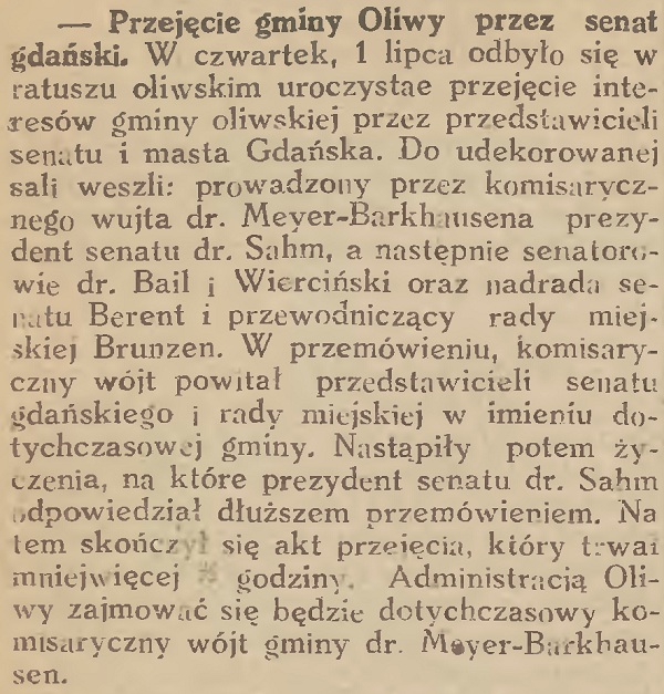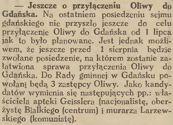 Przyłączenie Oliwy do Gdańska, "Mascotte"