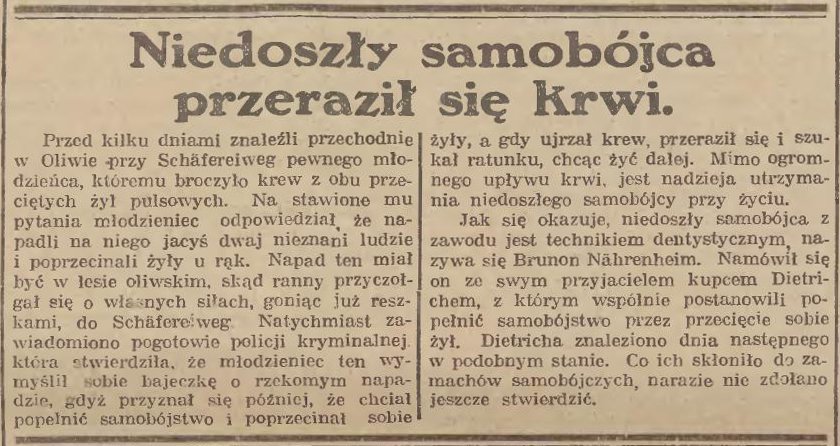 Niedoszły samobójca przeraził się krwi