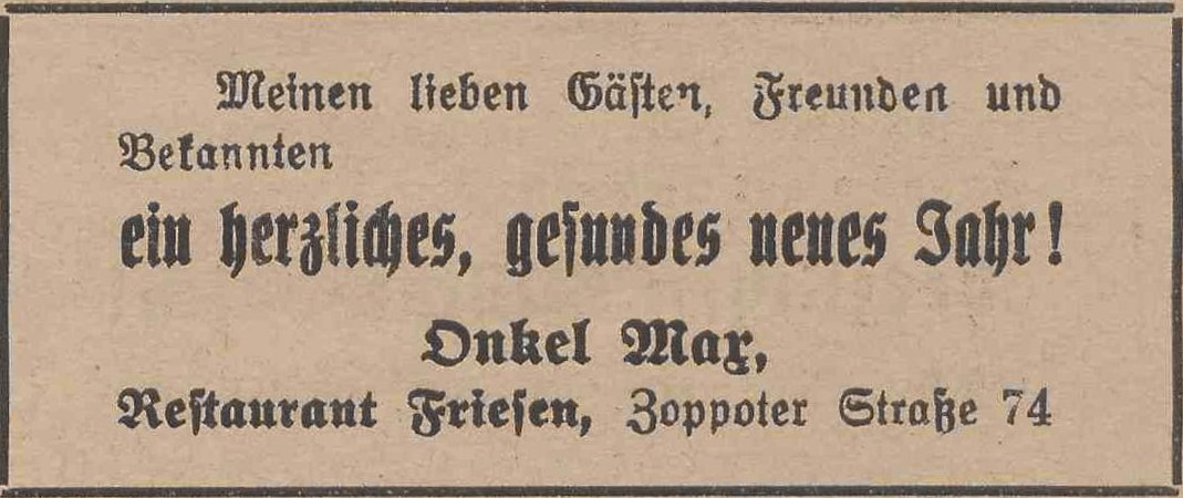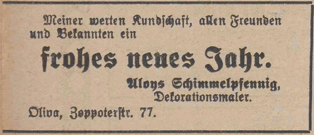 44. Aloyus Schimmelpfennih, Zoppoter Straße 77.