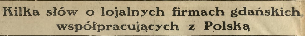 Przyjmując pod uwagę, że surowce dla tej fabryki sprowadzane są w znacznej części z Polski, należy wyrazić uznanie tej wielkiej imprezie, rozwój której jeszcze raz podkreślą ścisły ekonomiczny związek jaki istnieje między przemysłem i rynkiem w Polsce z jednej strony i wolnego miasta Gdańska - z drugiej.