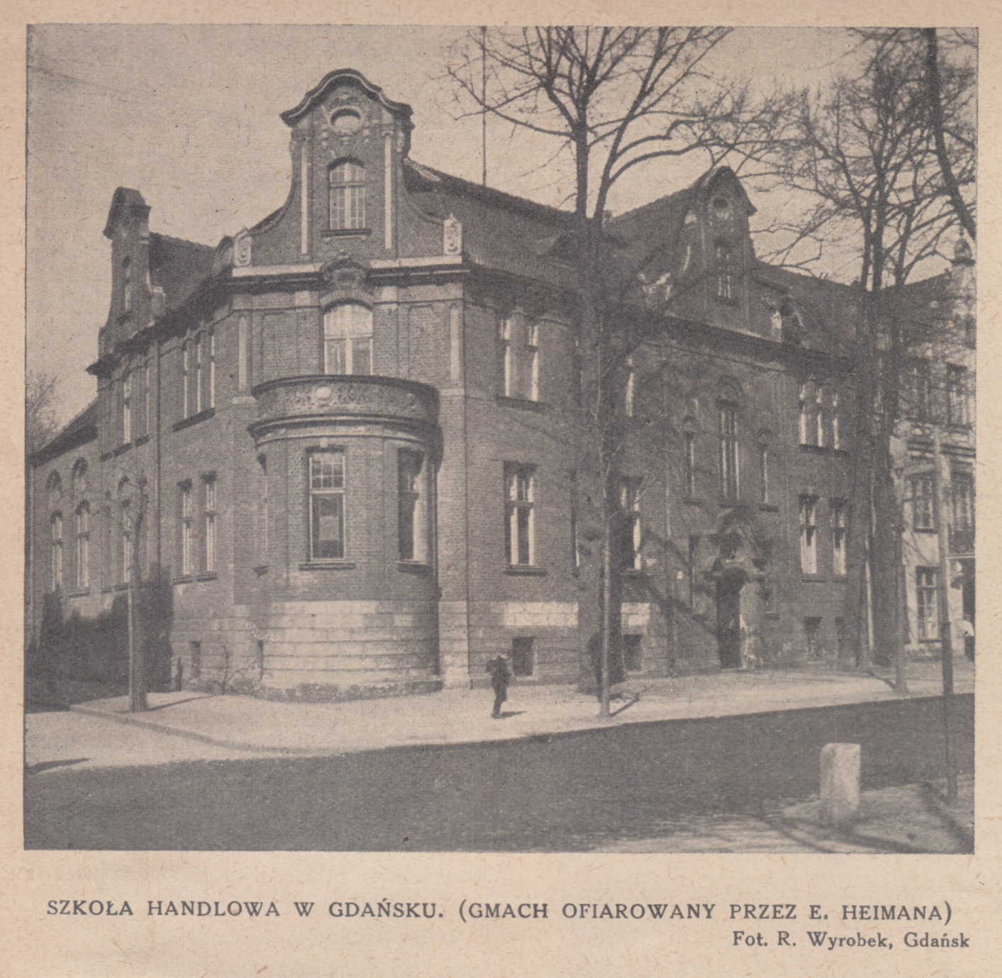 W Szkole Handlowej, której p. E. Heiman z Łodzi ofiarował budynek, trzeba dokończyć nowe skrzydło, którego część zaledwie zdołano w ub. roku wybudować. Młodzież nie ma gdzie się mieścić i szkoła musi pracować na dwie zmiany dziennie.