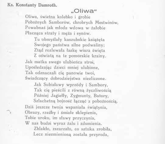 Ks. Konstanty Damroth, wiersz "Oliwa"