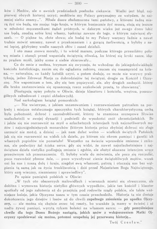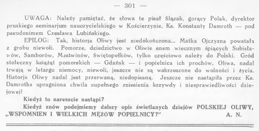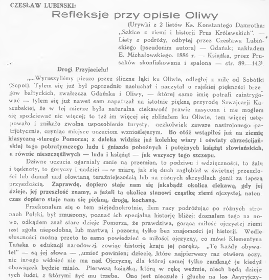 Czesław Lubiński, Refleksje przy opisie Oliwy