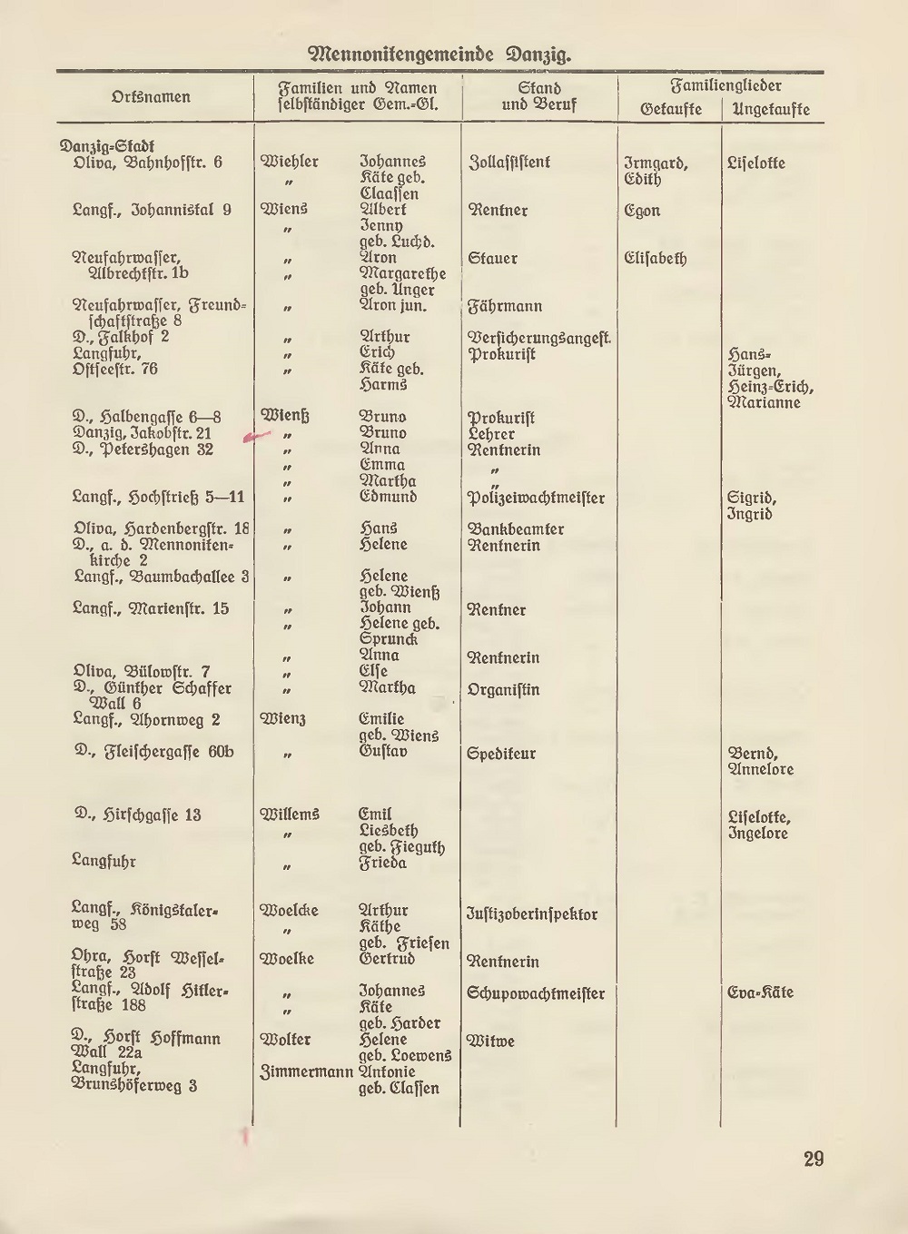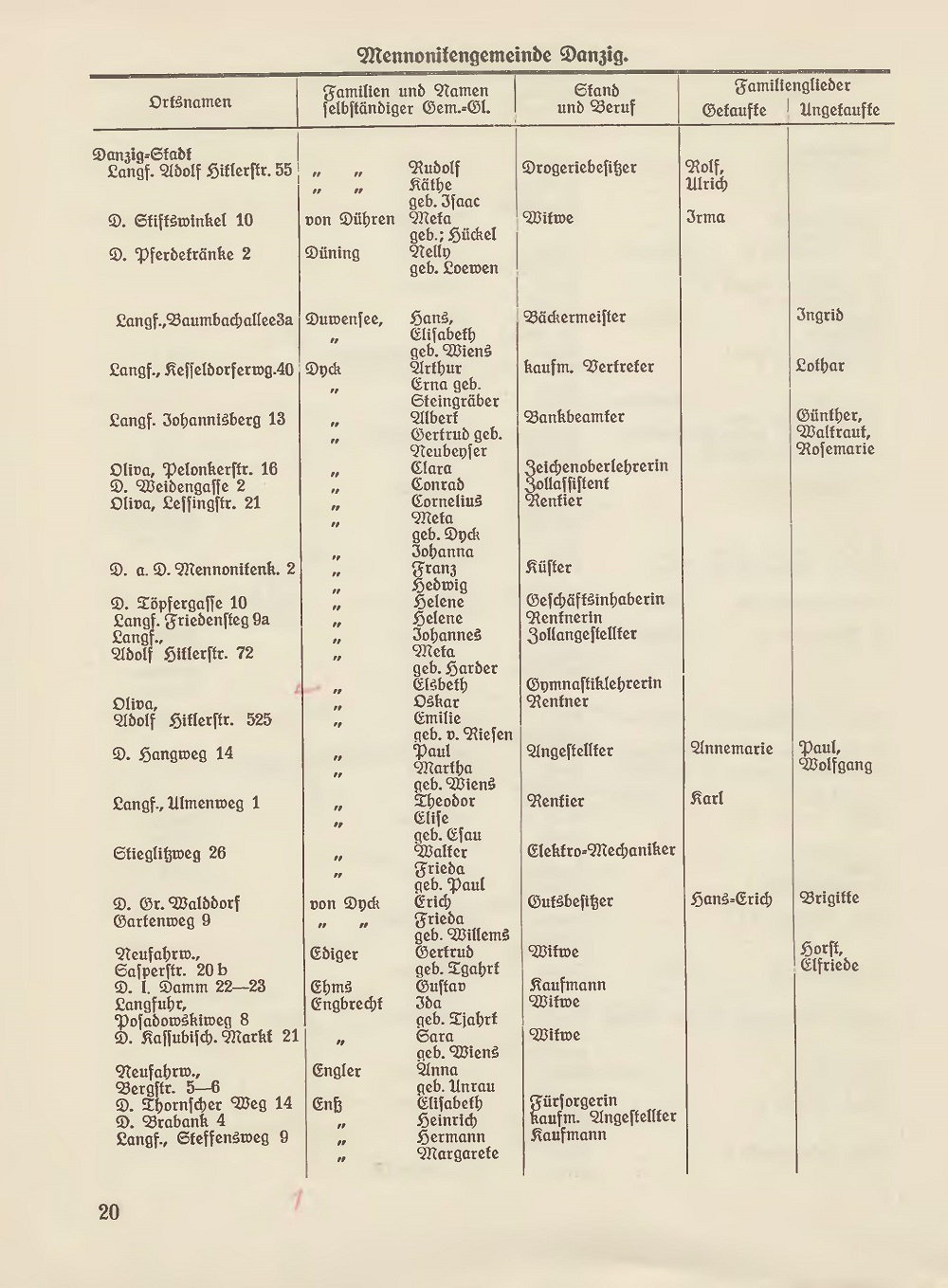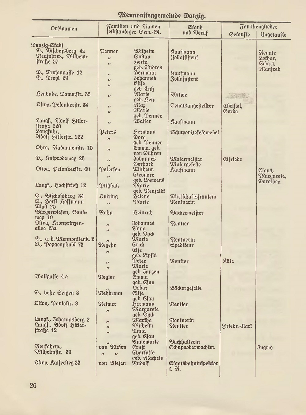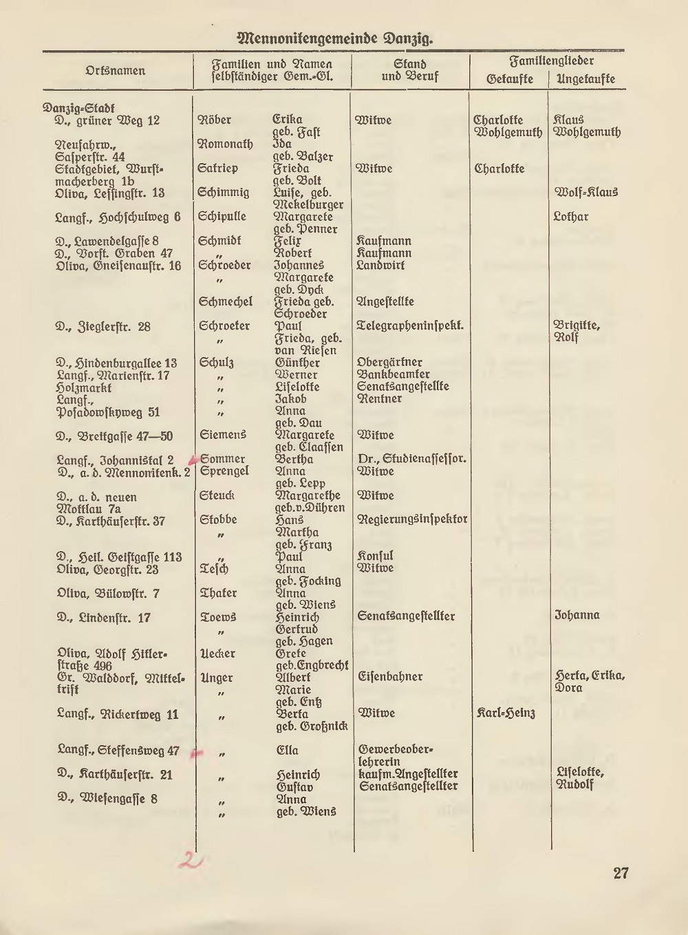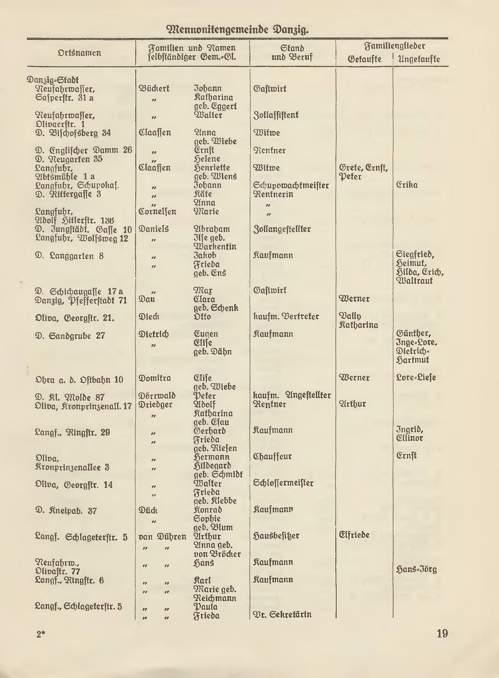 | Schönstraße 2 | Penner Erich | Kaufmann Angestellter | | Gert | 25 |