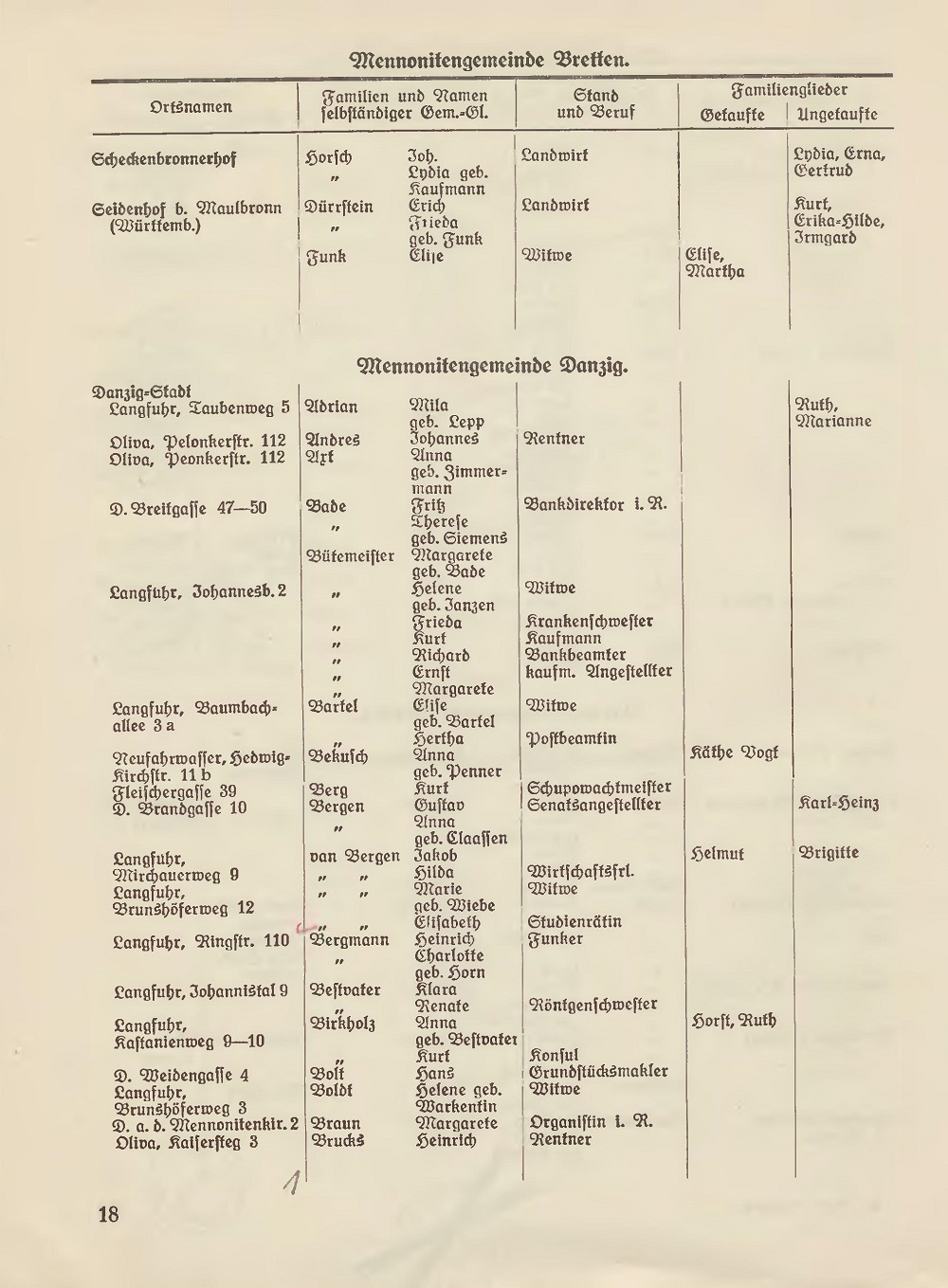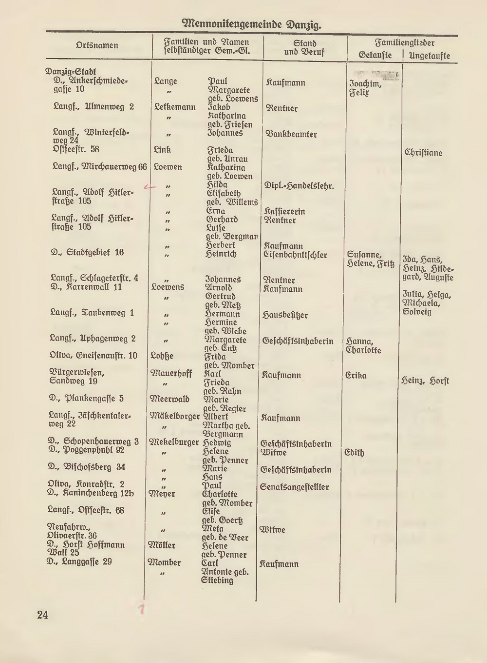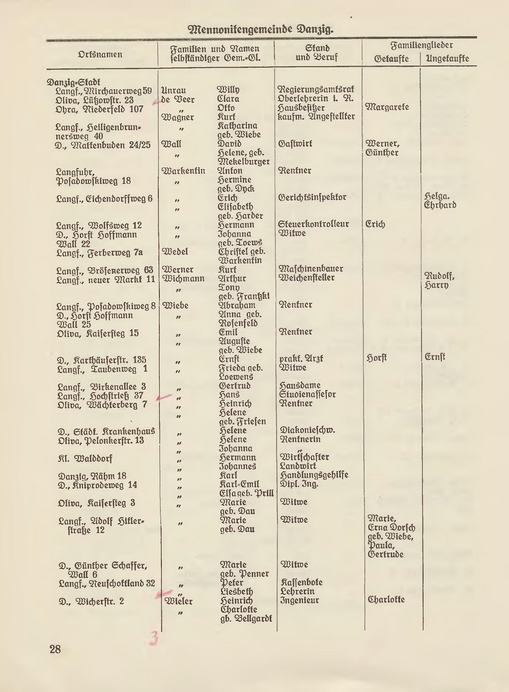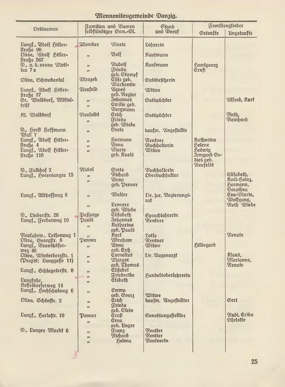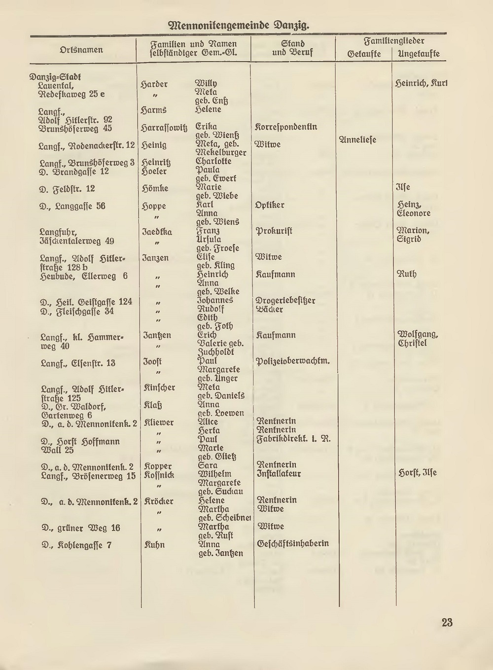 | Schönstraße 2 | Penner Erich | Kaufmann Angestellter | | Gert | 25 |