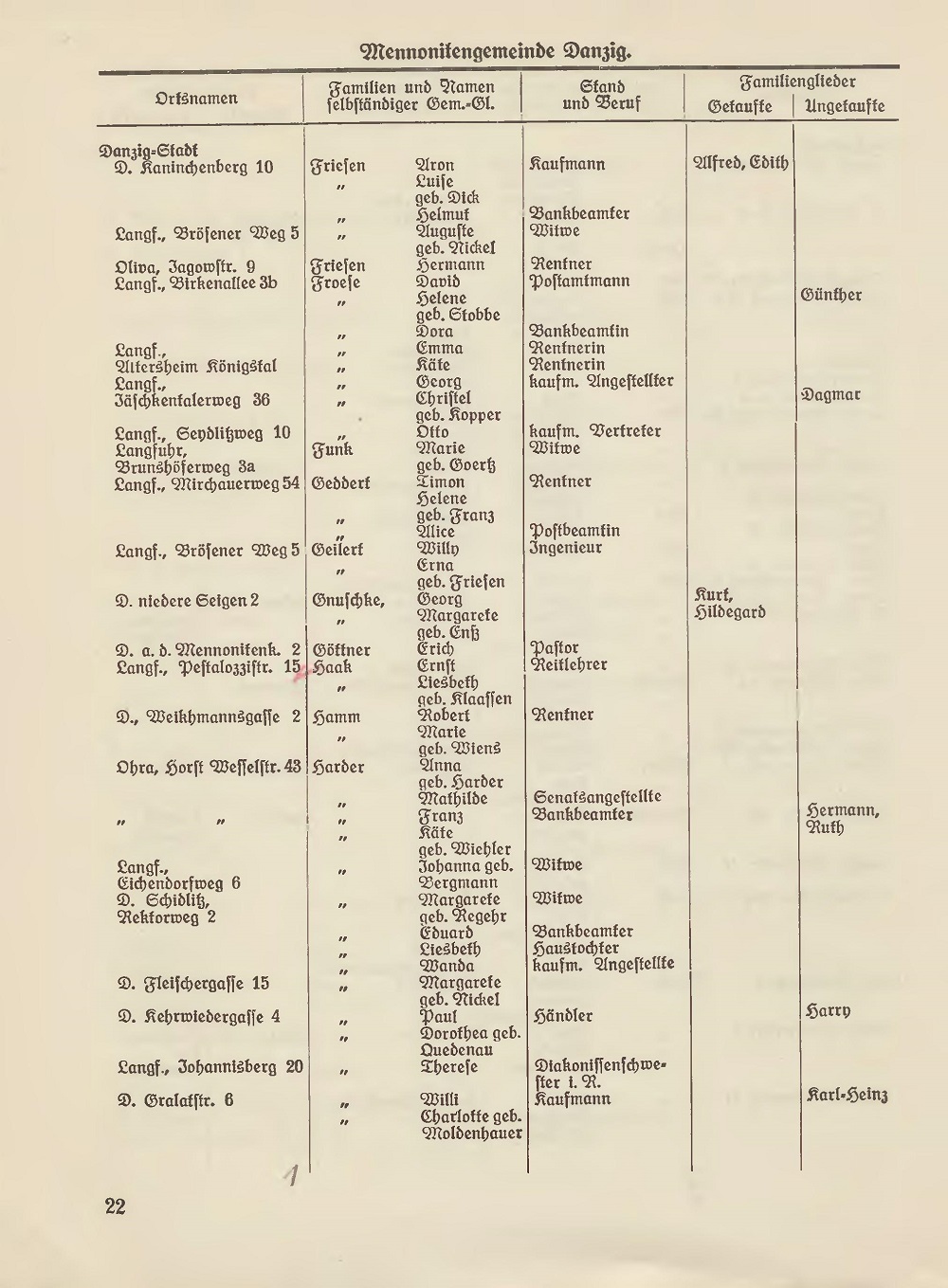 | Kronprinzanelle 17 | Driedger Katharina geb. Esau | | | | 19 |