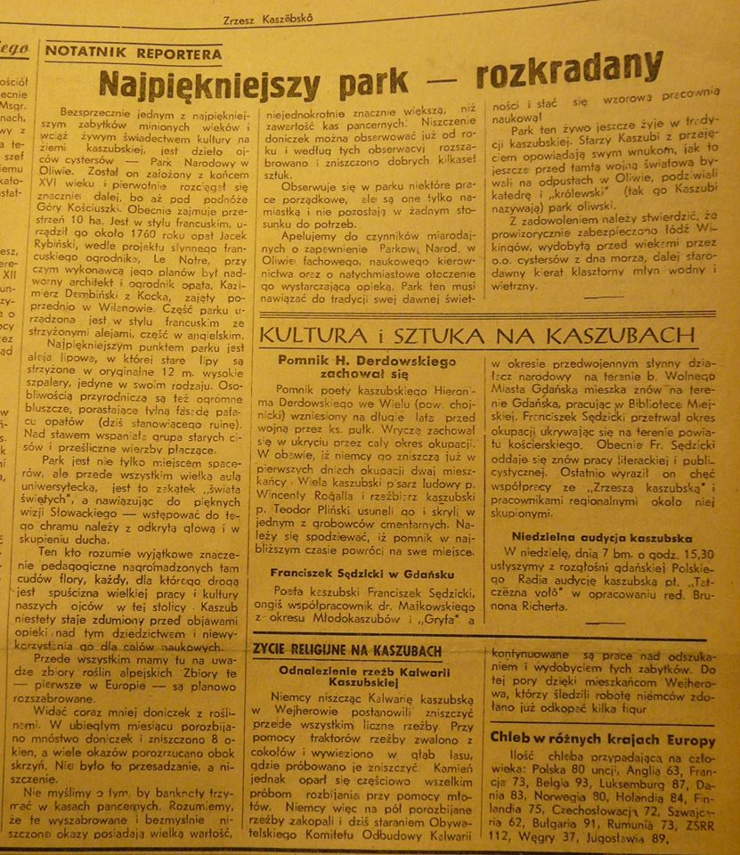 Par ten żywo jeszcze żyje w tradycji kaszubskiej. Starzy Kaszubi z przejęciem opowiadają swym wnukom, jak to jeszcze przed tamtą wojną światową bywali na odpustach w Oliwie, podziwiali katedrę i "królewski" (tak go Kaszubi nazywają) park oliwski.