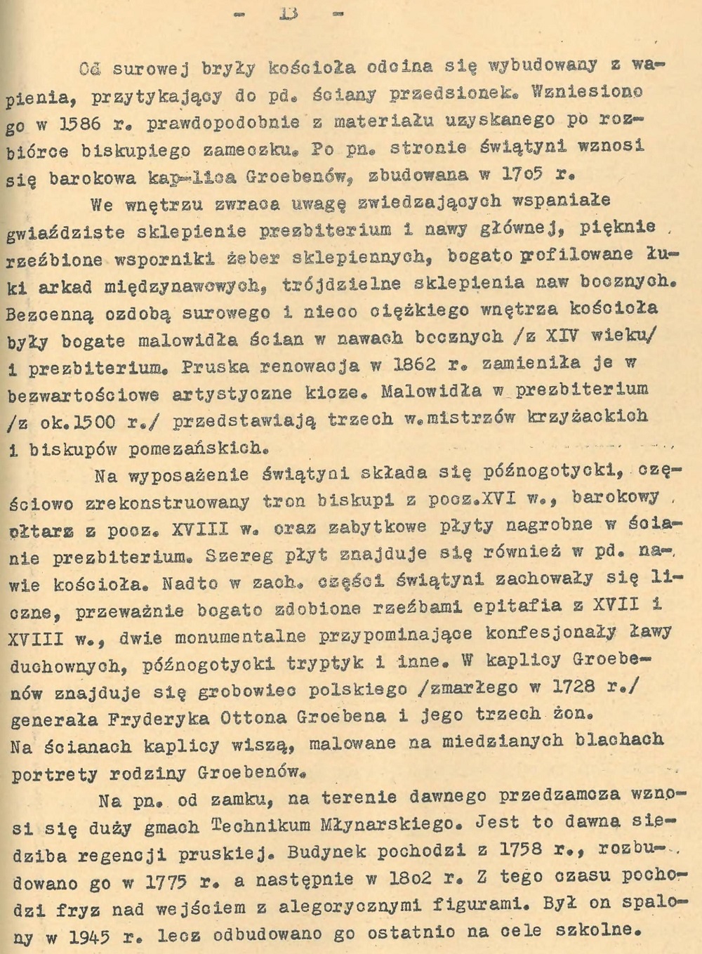 Niezwykle szczęśliwym trafem ocalały najcenniejsze, i najstarsze budowle Kwidzyna, a mianowicie Zamek kapituły pomezańskiei i Katedra. Olbrzymi ten zespół ciągnący się na przestrzeni blisko 200 m w kierunku ze wschodu na zachód, położony na skraju wysoczyzny morenowej widoczny jest z odległości kilkunastu kilometrów zwłaszcza od strony doliny Wisły.