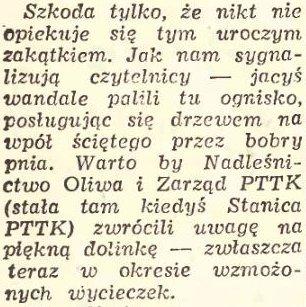Nazwa to skutek powojennej akcji sprowadzenia na Pomorze bobrów. Pionierem tej akcji był prof. August Dehmel. W 1948 roku, dzięki niemu, w zamian za żubry, sprowadzono do Polski z Woroneża 12 bobrów. Umiejscowiono je początkowo w warszawskim Zoo. Stłoczone pocięły się tam tak dotkliwie, że z 12 przeżyły jedynie 2. Te właśnie przeniesiono do Oliwy do utworzonego dla nich rezerwatu. Okazało się, że środowisko im dane jest dla nich również zbyt małe. W 1964 roku zlikwidowano rezerwat a bobry przeniesiono na Mazury (Popielno). Pamiątką jest obgryziony pniak dębowy w okolicy dawnego zbiornika wodnego przy pozostałościach tamy.