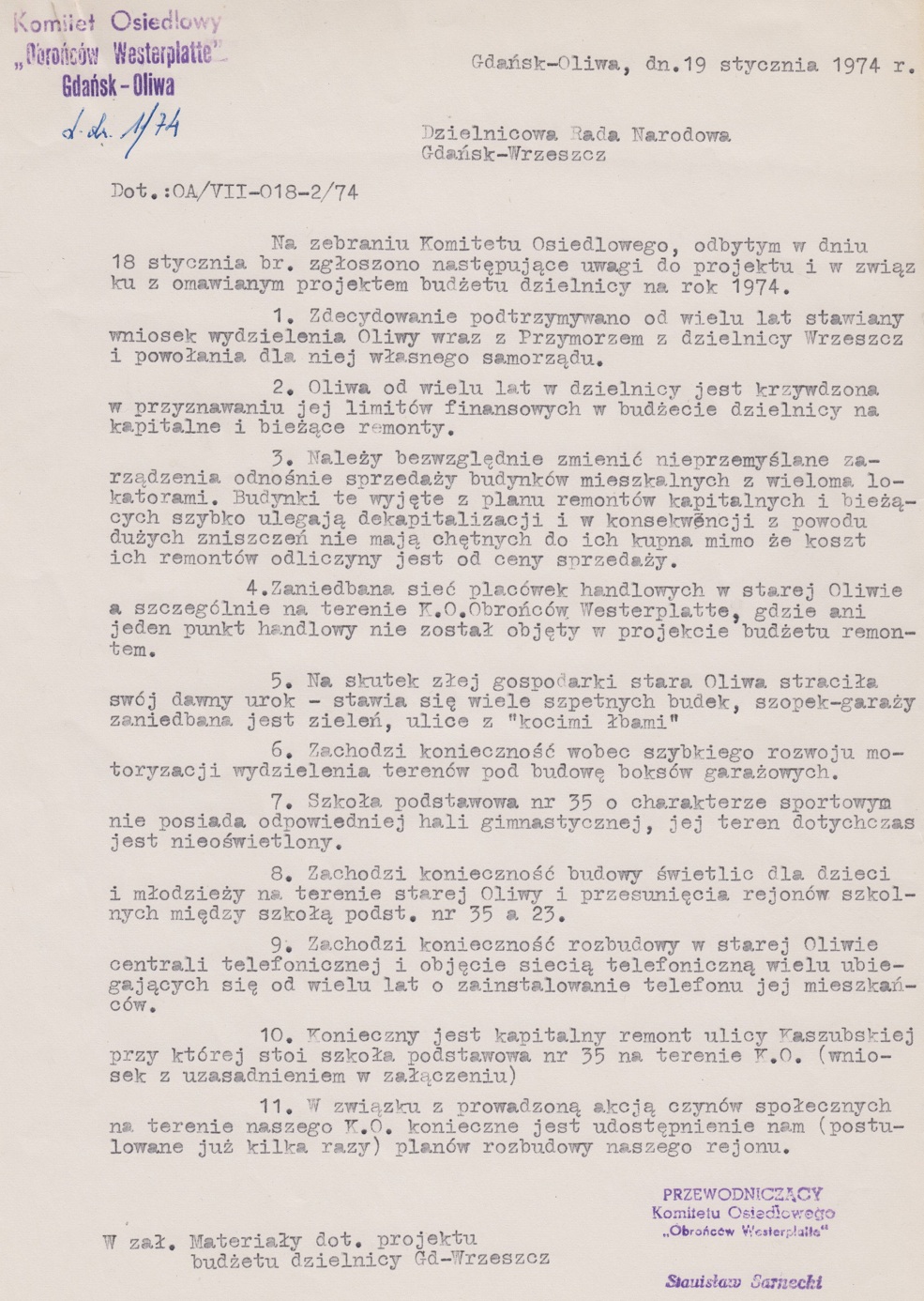 Z zebrania komitetu osiedlowego "Obrońców Westerplatte"