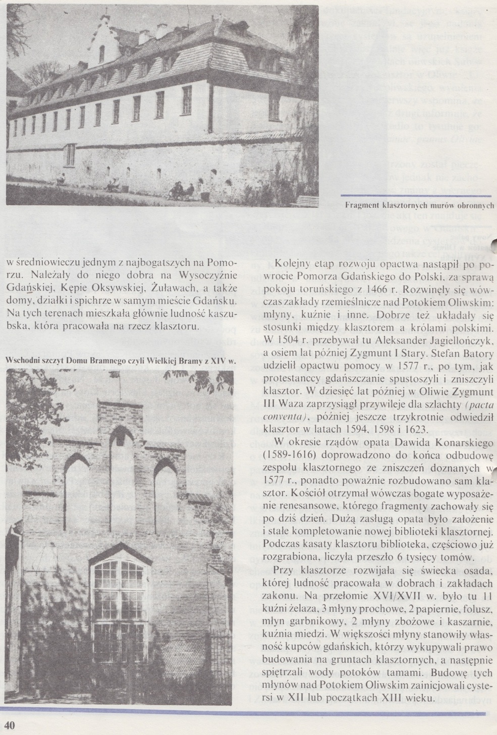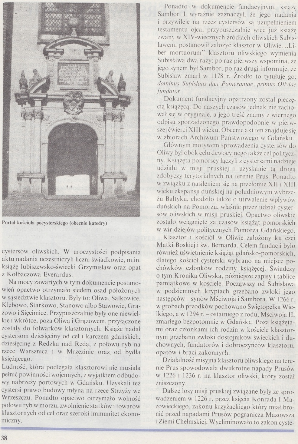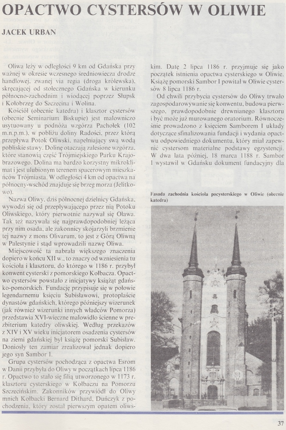 Jacek Urban, "Opactwo cystersów w Oliwie", Mówią Wieki, Warszawa grudzień 1988, str 37-42: