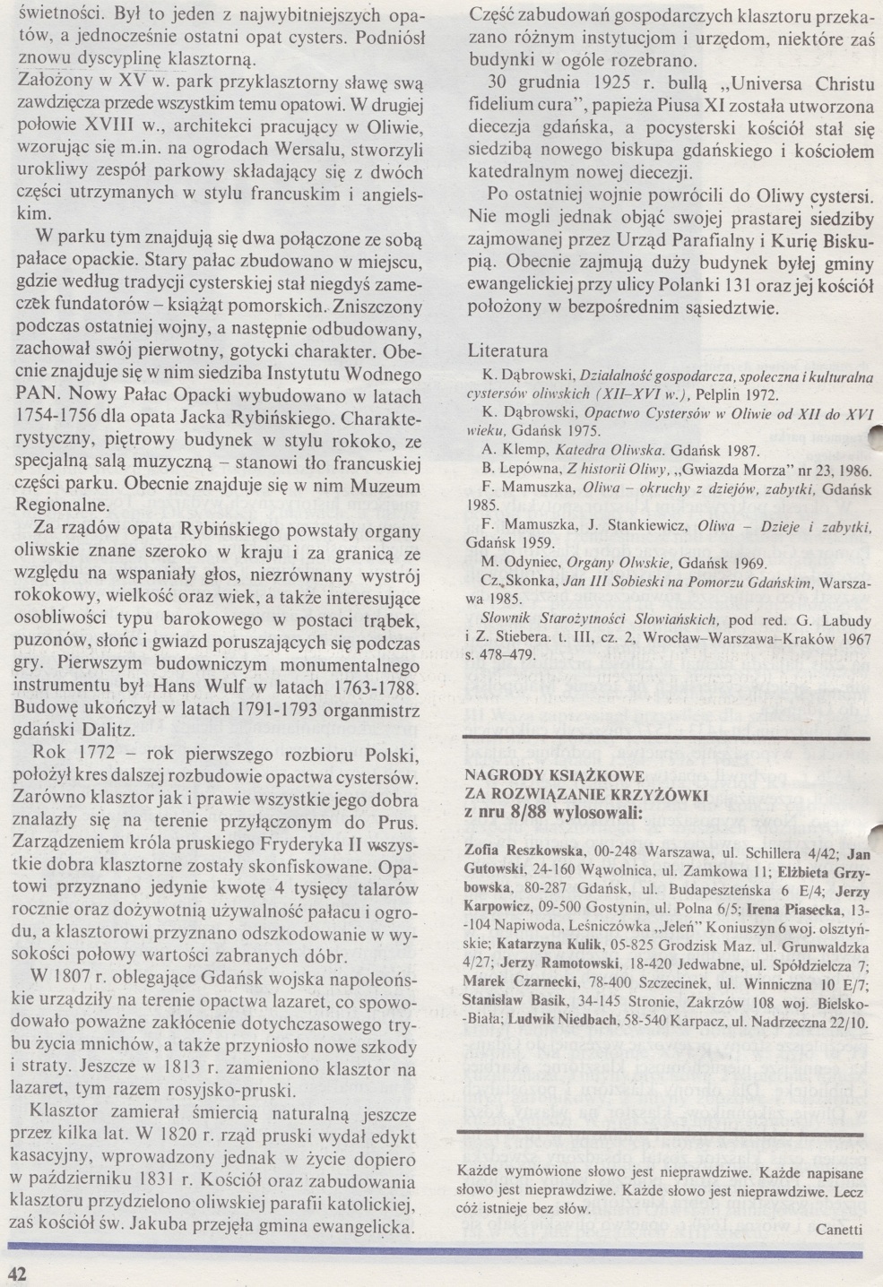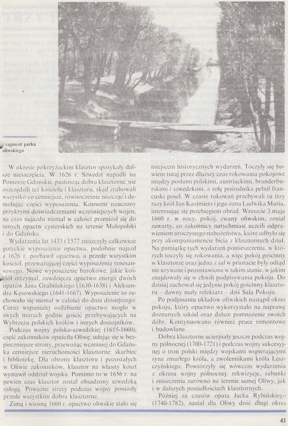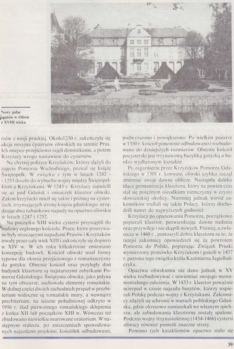 Jacek Urban, "Opactwo cystersów w Oliwie", Mówią Wieki, Warszawa grudzień 1988, str 37-42: