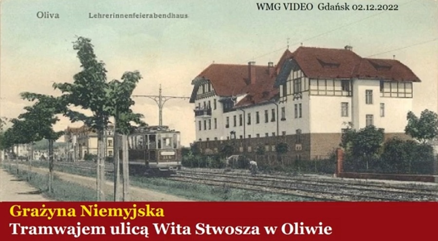Tramwajem ulicą Wita Stwosza w Oliwie. Grażyna Niemyjska, WMG VIDEO 26 .2. 2023 (02. 12. 2022).