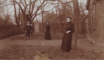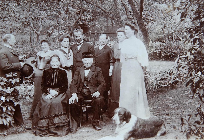 Ferdynand Maciej Landmann (1827-1914) i Franciszka Landmann z domu Hanke (zm. 18 kwietnia 1908 r.) wraz z rodziną w ogrodzie przy ul. Klosterstraße 17 (Cystersów). Fot. z pierwszej dekady XX wieku.