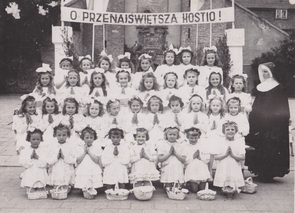 Pierwsza Komunia Święta. Plac przed Katedrą. 1948 rok.