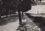 Budynek przy skrzyżowaniu ulic Stary Rynek Oliwski i Kwietna niższy, w głębi przy Polankach puste pola po ratuszu oliwskim i budynku stojącym niegdyś w miejscu obecnego "rynku oliwskiego".