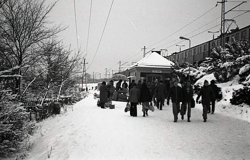 Przystanek Szybkiej Kolei Miejskiej "Gdańsk Przymorze". W latach 1951-1955 "Gdańsk Polanki". Od 2004 roku "Gdańsk Przymorze-Uniwersytet". W głębi kasy biletowe znajdujące się po południowej stronie ul. Kołobrzeskiej. Zima 1974-1975 roku.