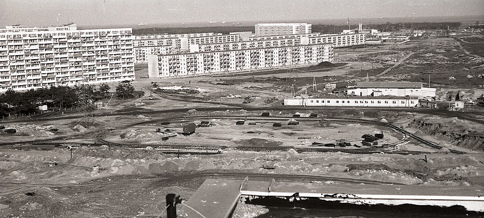 Ujęcie wykonane w 1975 roku z dachu wieżowca przy ul. Starowej 23 znajdującego się na Zaspie przedstawia m.in. (po lewej) ostatni cztero klatkowy falowiec przy al. Rzeczypospolitej i czteropiętrowy blok przy ul. Opolskiej. Na pierwszym planie postępująca budowa zaspiańskiej pętli tramwajowej.