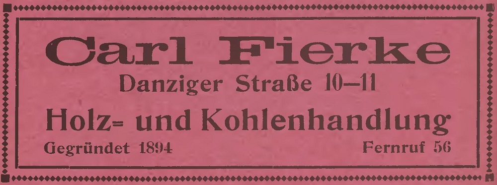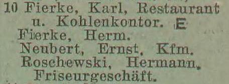 W tym czasie zmieniała się nazwa ulicy. Rodzina Fierke mieszkała od około 1930 roku przy ul. Pommersche Straße 135 i następnie od 1933 roku przy Adolf-Hitler-Straße 503.
