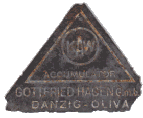 Fabryka KAW Danziger Accumulatoren-Fabrik Gottfried Hagen G.m.b.H. działała przy ulicy Adolf-Hitler-Straße 489 (Grunwaldzka). W 1945 roku podczas wyzwalania Oliwy lub zaraz po budynki fabryki zostały spalone, a na sąsiednich parcelach (491, 493) umieszczono złomowisko sprzętu wojskowego.