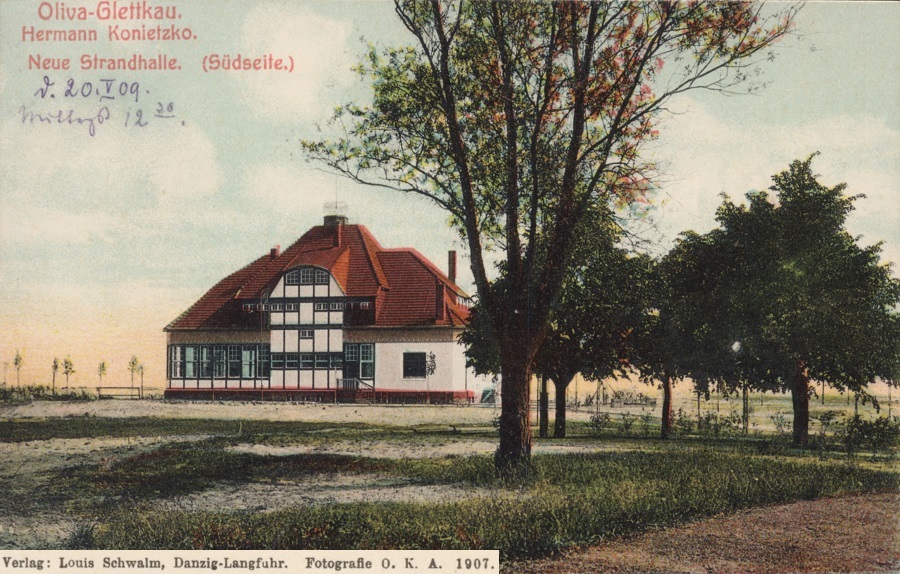 W nr 18 z 20. 3. 1907 r. przed oficjalnym przyłączeniem Jelitkowa do Oliwy (01. 04. 1907) zamieszczono projekt budynku, który wykonał oliwski architekt (ul. Asnyka 1). Hala plażowa jak podawano była w trakcie realizacji: „Budynek jest konstrukcją szachulcową z muru pruskiego”, „Dach pokryty będzie czerwonymi dachówkami”. Halę plażową w Jelitkowie budował cieśla z Oliwy (al. Grunwaldzka 495) za cenę 37 000 marek. Budynek był gotowy na sezon roku.