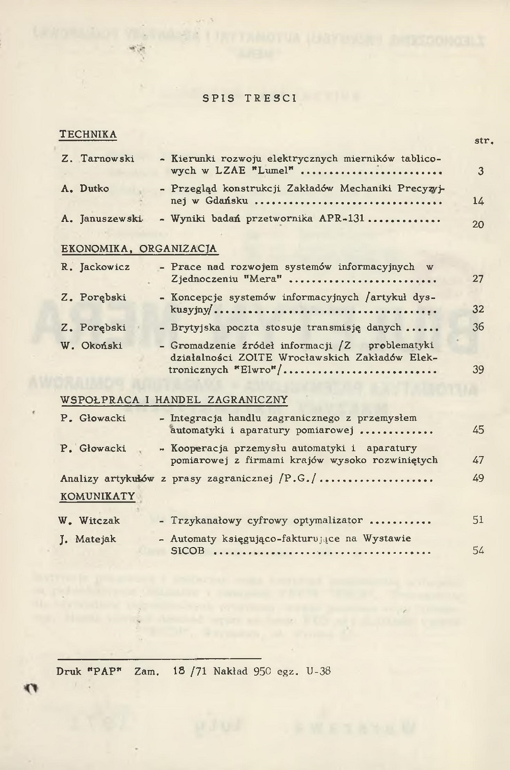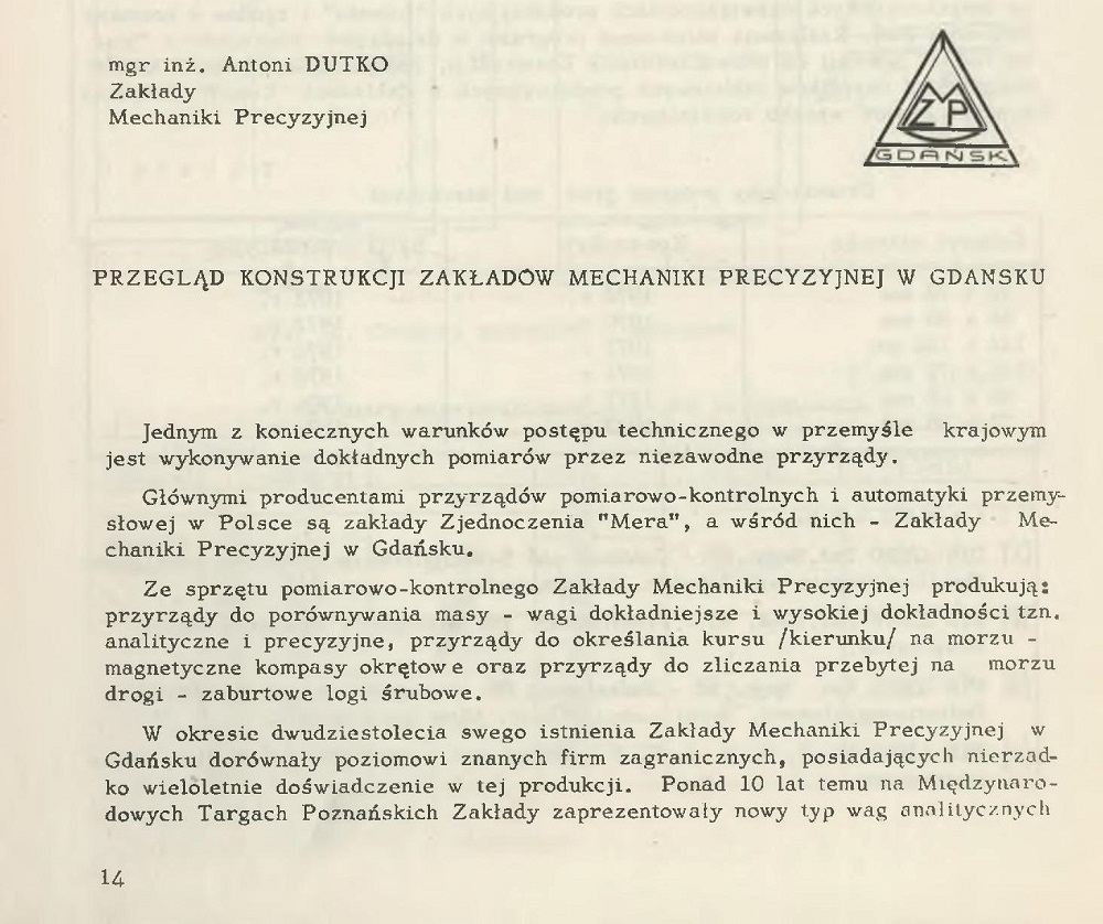 Antoni Dutko, "Przegląd konstrukcji Zakładów Mechaniki Precyzyjnej w Gdańsku, str. 14-20.