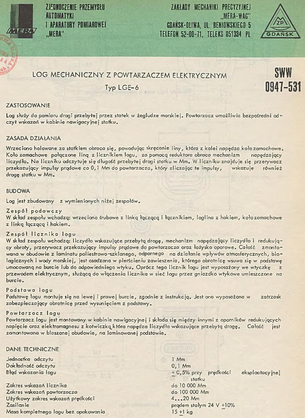 Log mech. z powtarzaczem elektr. typ LGE-6