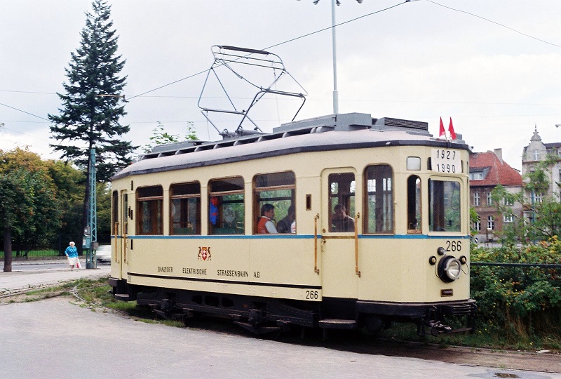 Pêtla tramwajowa w Oliwie. Tramwaj typu "Bergmann" z Danziger Waggonfabrik AG, rocznik 1927. Fot. z 1990 roku.
