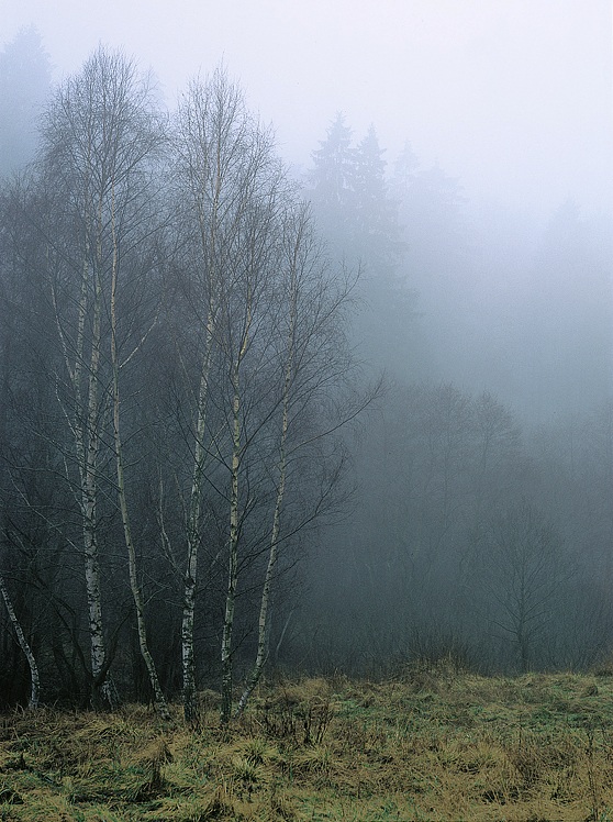 To już późna, mglisto-mżawkowa jesień po lewej stronie łąki w Dolinie Radości. Zdjęcie z 1992 roku.