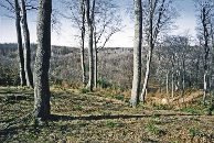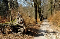 Promienie niskiego słońca rozświetlają specyficznym kolorem otoczenie - jeszcze pokrytego lodem - leśnego oczka wodnego, znajdującego się w pobliżu Owczarni. Zdjęcie wykonałem w 1991 roku.