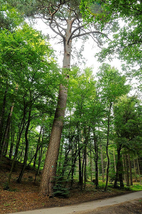 Przy Kleszej Drodze, po której w tym miejscu prowadzi krótki odcinek czarnego szlaku, rośnie od około 215 lat sosna pospolita, będąca pomnikiem przyrody. Ma ona 30 m wysokości, jej obwód w pierśnicy wynosi 325 cm. Pochylona jest w prawo, tak jak i wszystkie drzewa na tym zboczu. Zdjęcia wykonałem 04 września 2012 roku.