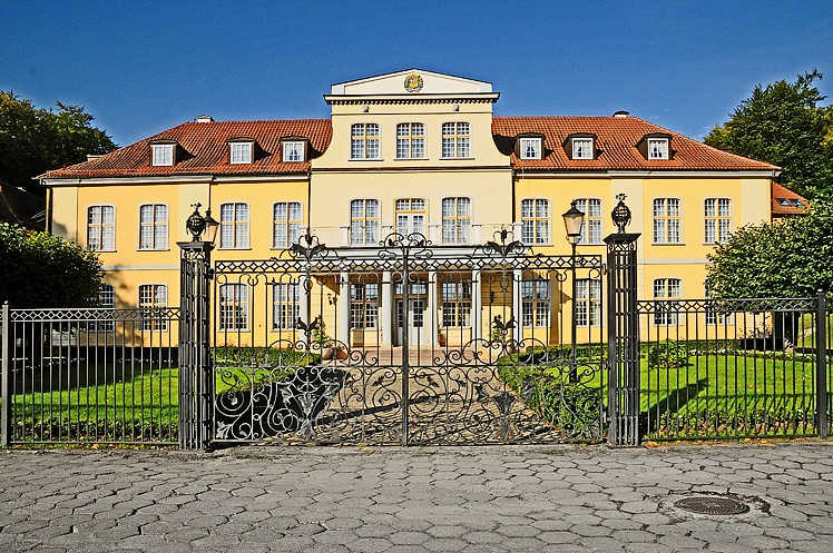 Do pałacu od strony wschodniej prowadzi pięknie kuta brama.