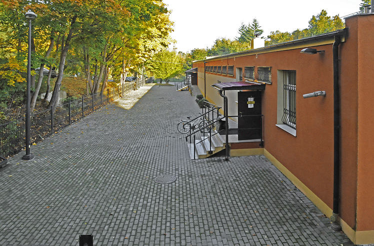 Tak wygląda budynek archiwum Instytutu Pamięci Narodowej - Oddział w Gdańsku, zbudowany na dawnym cmentarzu. Proszę zwrócić uwagę, że stoi on tyłem do przyległej ulicy Polanki. Zdjęcie wykonałem 17 października 2012 roku.
