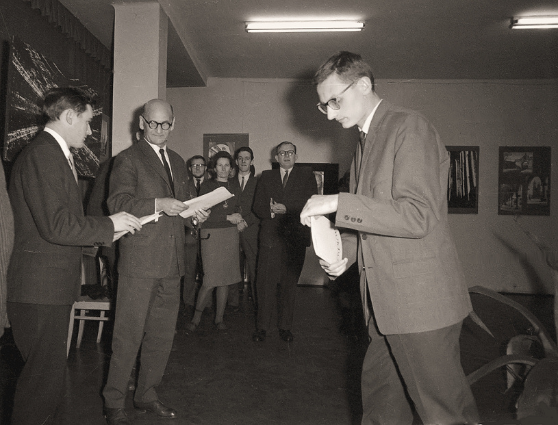 Wernisaż wystawy pokonkursowej „Zabytki w fotografii artystycznej”, wręczenie nagród, III Nagrodę odbiera Ryszard Petrajtis, 01.1965