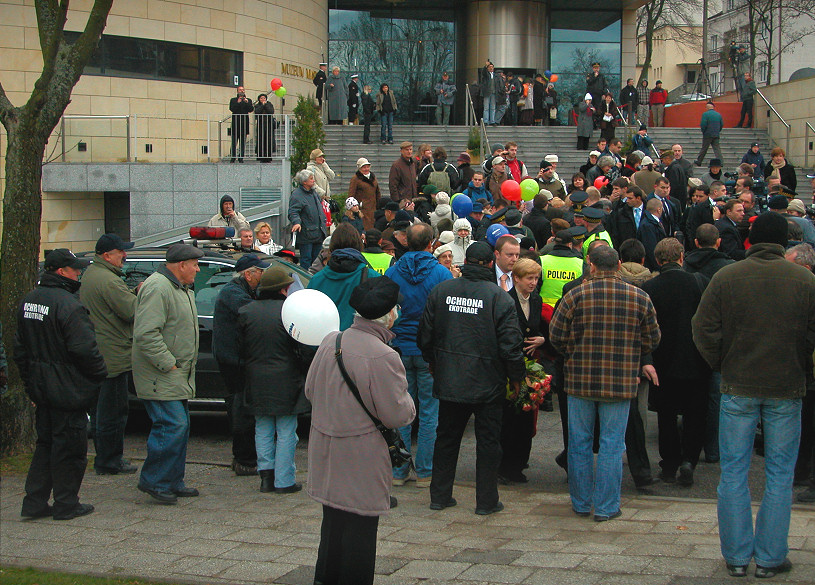 Widok Muzeum Miasta Gdyni w dniu otwarcia, 16.11.2007 r. Prezydent przed Muzeum