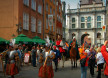 16072008 Parady uliczne. Gdańsk i Gdynia prześcigają się w pomysłowości. Bardziej dostojna historyczna w Gdańsku. Majowa, wcześniejsza od brazylijskiej w Gdyni. Tegoroczne obchody Święta Miasta będą się odbywać pod hasłem „Kulturalnie zapraszamy!”. Gdańsk ubiega się o tytuł Europejskiej Stolicy Kultury w 2016 roku. Obchody Święta Miasta odbywają od 2004 roku. Uroczystość organizowana jest z okazji rocznicy uszlachetnienia przez króla Polski Kazimierza Jagiellończyka gdańskiego herbu. Król specjalnym przywilejem 25 maja 1457 roku do dwóch krzyży widniejących na herbie dodał złotą koronę. Nadany przez króla tzw. Wielki Przywilej, stał się podstawą potęgi miasta w czasach nowożytnych - zapewniał swobodny przywóz towarów Wisłą z Polski, Litwy i Rusi. Gdańsk stał się miastem, który w Rzeczypospolitej odgrywał wyjątkową rolę - był największym z portów, należał do najbogatszych miast. W niedzielę 25 maja, w 351 rocznicę nadania miastu przywileju zaplanowana jest parada, której uczestnicy ubrani w historyczne stroje przejdą ul. Długą i Długim Targiem, czyli Traktem Królewskim. (PAP) I inne wieści z portali internetowych: Na pewno nikt nie wyobraża sobie obchodów Święta Miasta bez wspaniałej parady. Organizatorzy z pewnością nie zawiodą i będzie co oglądać. Ulice zapełnią się aktorami ubranymi w stroje historyczne. Krzykacze obwieszczą nadejście orszaku królewskiego, nawołują do przywdziania uroczystych szat, przystrojenia domostw by godnie przyjąć Najjaśniejszego Pana, pogromcę zakonu Krzyżackiego... Uroczyste powitanie króla będzie można oglądać od godziny 12°° na Długiej oraz Długim Targu. Nie zabraknie uroczystego przekazania kluczy do bram miasta, złożenia przysięgi, przyjęcia hołdu. Fanfary, wiwaty i szczudlarska parada zachwycą nie tylko miłośników historycznej epoki. Jednym z bardzo interesujących wydarzeń będzie z pewnością także Festiwal Gdańskich Lwów, podczas którego figury kolorowych królów zwierząt znów powędrują na ulice miasta. Zachęcony reklamą i mając dużo wolnego czasu na emeryturze wybrałem się z aparatem podziwiać te wysiłki Gdańska w ubieganiu się o tytuł Najlepszej Stolicy Kulturalnej. Na tle znanych mi poprzednich parad z reportaży w prasie i Internecie, historyczna parada 2008 to podobny zestaw strojów i pomysłów pokazywany na innych paradach np.z okazji Jarmarku Dominikańskiego i wcześniejszych. Koniec maja, więc turystów niewiele a dla miejscowych nie jest to aż taka atrakcja i nie ma tłumów. Estrada przed Zieloną Bramą, hałaśliwe przemówienia w stylu staropolskim, podmarznięte szczudlarki w przewiewnych strojach. Stać na szczudłach przez prawie dwie godziny aż się powitają, przekażą klucze, złożą przysięgę, zawiwatują po raz dwudziesty, może zachwyci poniektórych ale nie dotyczy to wypudrowanych na blado, górujących nad tłumem panienek na szczudłach w ten raczej rześki dzień. Pieśni chóralne, dawne tańce przed estradą a właściwie przed Królem, walki rycerzy, toasty i przemówienia na cześć króla dobrodzieja i powrotny pochód przebierańców. Przedstawiam jak zwykle trochę widoków miasta w dniu parady. Później odbyło się nie reklamowane spotkanie kibiców Lechii przed Neptunem i nad Motławą. Wejście do ekstraklasy Lechii Gdańsk. Podczas gdy cała ulica Długa przed Neptunem wypełniła się tłumem szalikowców z transparentami, właśnie fotografowałem widoki z wieżyczki Muzeum Archeologicznego. Ale trafiłem na moment demonstracyjnego przepłynięcia statkiem po Motławie kibiców z całym arsenałem okrzyków, transparentów, taką wielką, kulturalną, pływającą radością z kopanej piłki. W tym dniu pewnie padł rekord w ilości wypitego piwa. Zrezygnowałem z dalszego świętowania i „oddałem Gdańsk kibicom”. Trochę na wyrost zrejterowałem bo nic specjalnego się nie wydarzyło. Jak to mówią „strachy na lachy”. |