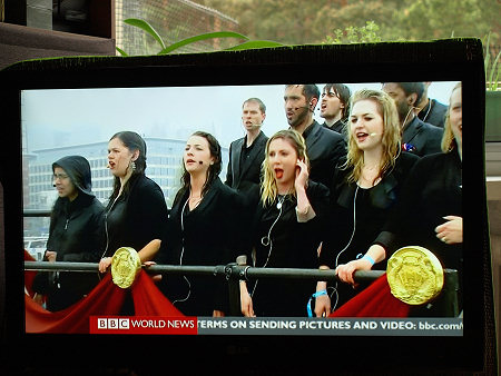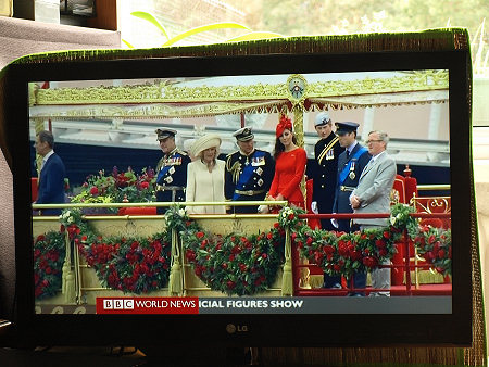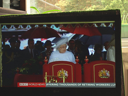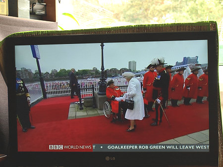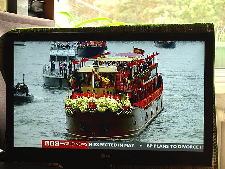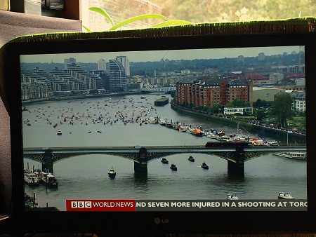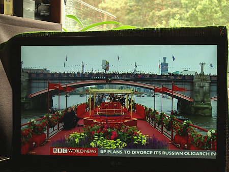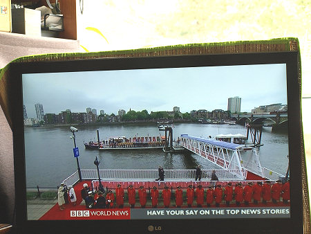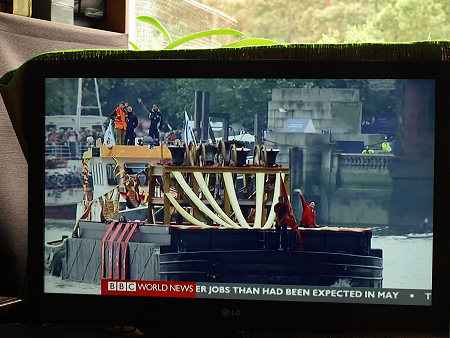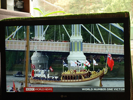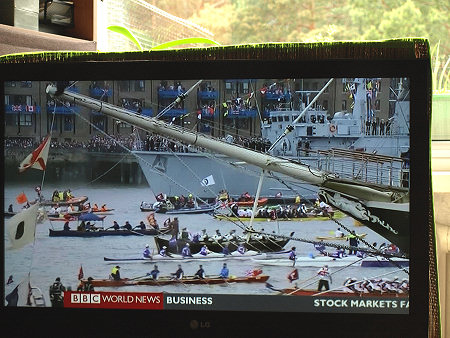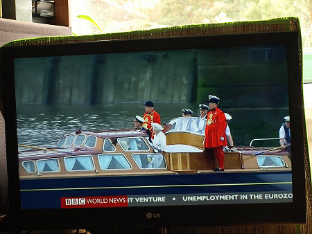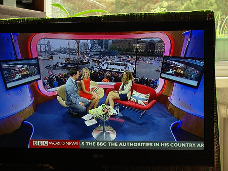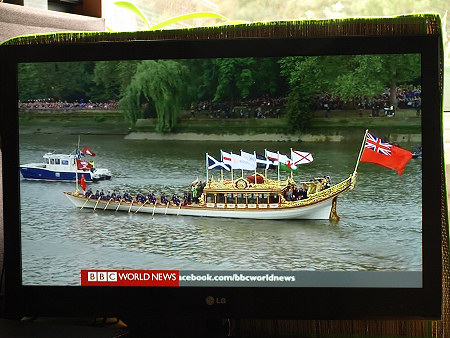 Parada jednostek pływających na Tamizie w Londynie z okazji 60 lat panowania w Wielkiej Brytanii Królowej Elżbiety II, BBC World News, reportaż telewizyjny 04.06. 2012