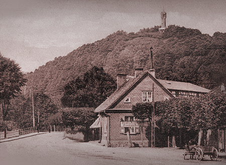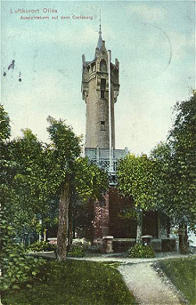 ![]() Widok wieży widokowej na wzgórzu Karlsberg Aussichtsturm auf dem Carlsberg rok wydania 1906 |