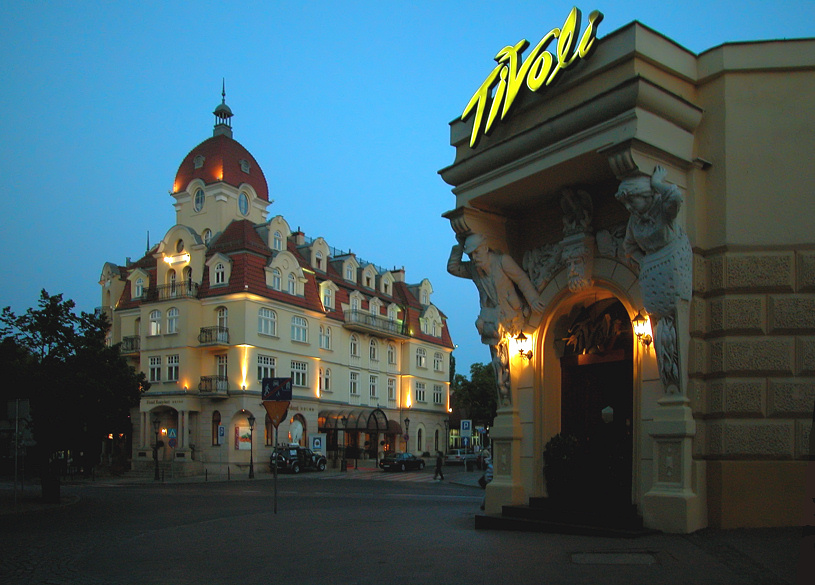 Gala festiwalu „Dwóch Teatrów”, 02.06. 2008, Monciak w Sopocie wieczorową porą, hotel „Rezydent” i restauracja „Tivoli”
