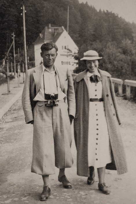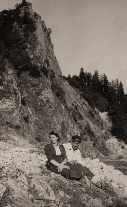 Archiwalne zdjęcia z albumu rodzinnego, w Żegiestowie i na wycieczce motocyklowej, postój z widokiem chyba na Pieniny, połowa lat trzydziestych