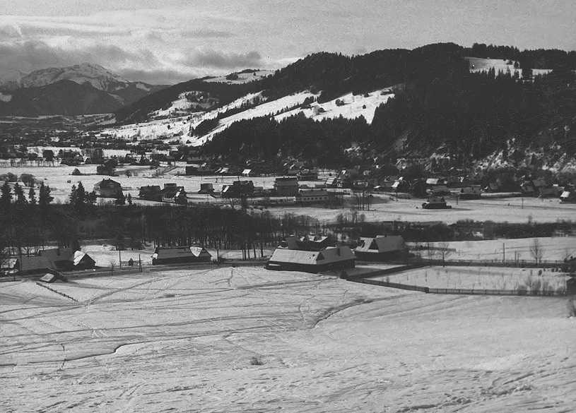 Archiwalne zdjęcia z albumu rodzinnego, widok na Poronin z Galicowej Grapy, koniec lat lat trzydziestych, ~~1938 r.