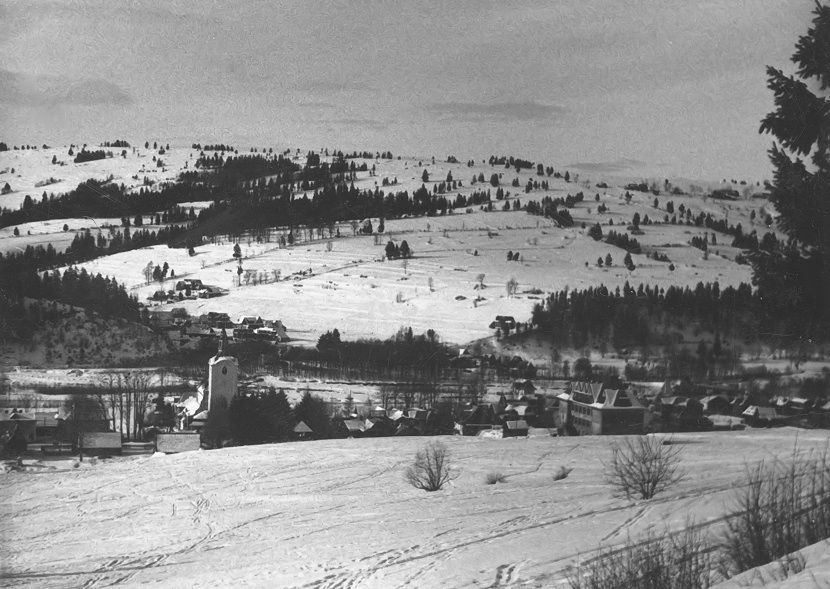 Archiwalne zdjęcia z albumu rodzinnego, widok na Poronin z Galicowej Grapy, koniec lat lat trzydziestych, ~~1938 r.