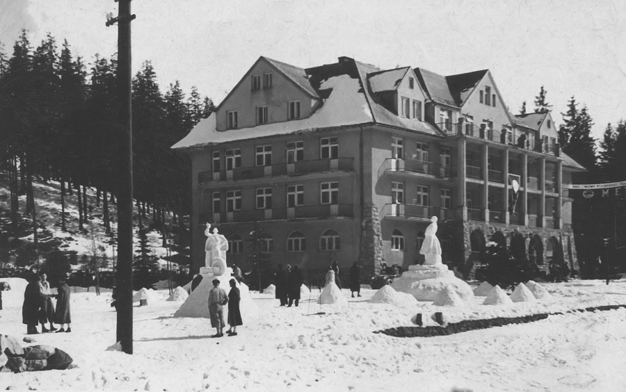 Archiwalne zdjęcia z albumu rodzinnego, Zakopane, konkurs rzeĽby przed hotelem Bristol, 1937