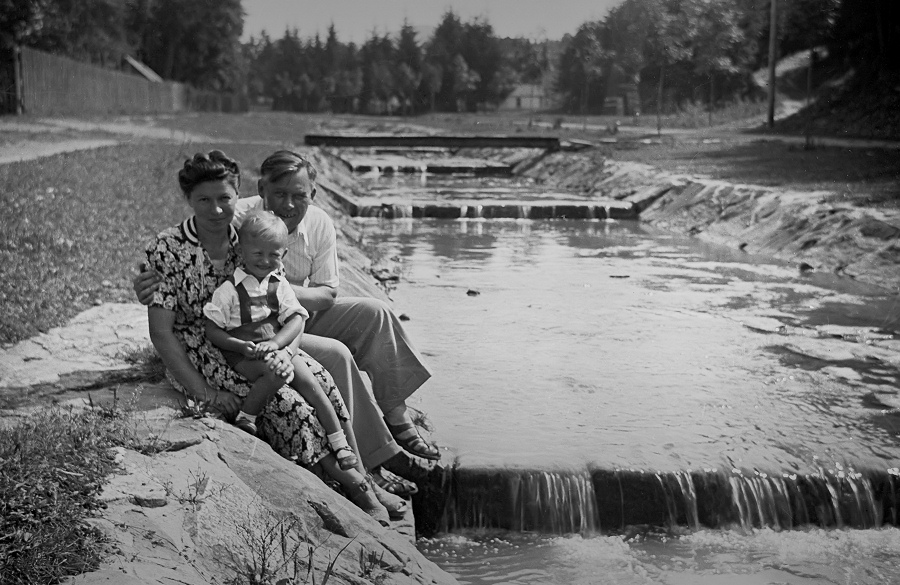 Archiwalne zdjęcia z albumu rodzinnego, Rabka, ja z rodzicami nad potokiem Słonka, 1942 r.