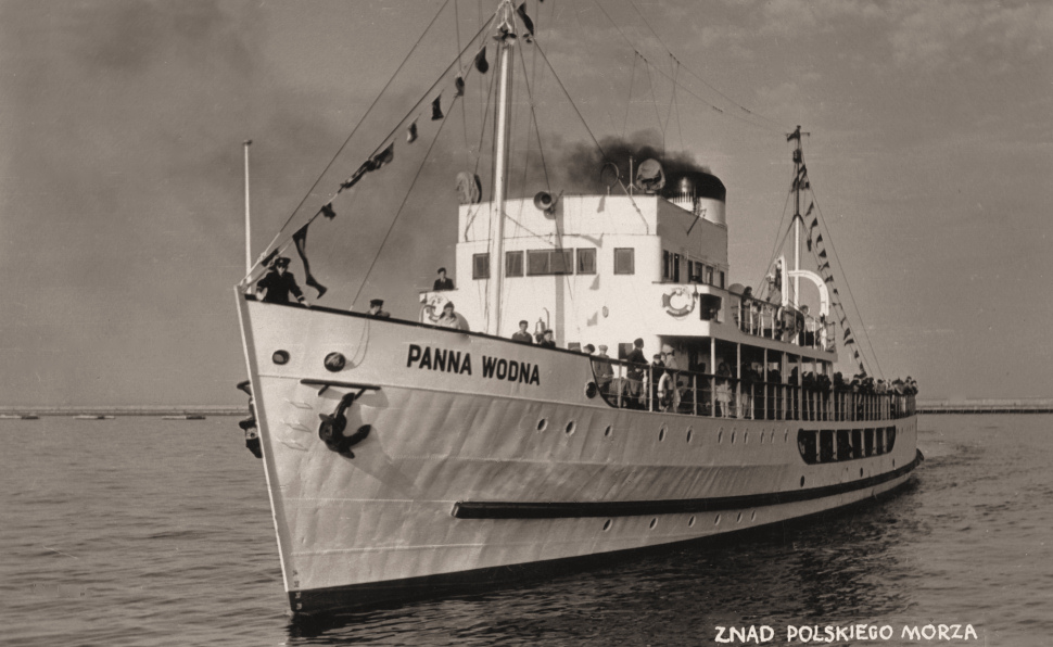 Archiwalne zdjęcia z albumu rodzinnego, Gdynia, statek Panna Wodna, pocztówka z 1958 roku