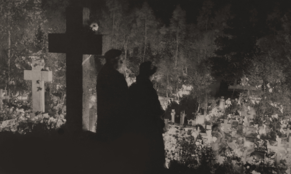 Archiwalne zdjęcia z albumu rodzinnego, Sopot, na cmentarzu w dniu Wszystkich Świętych, ~~1970 r.