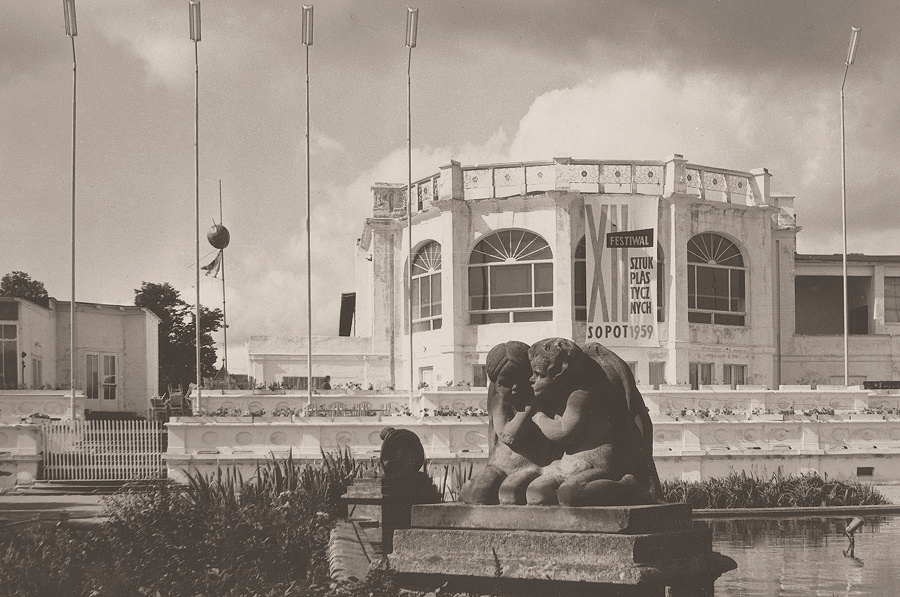 Widokówki, Sopot, widok na Rotundę i fontannę, 1959 r.