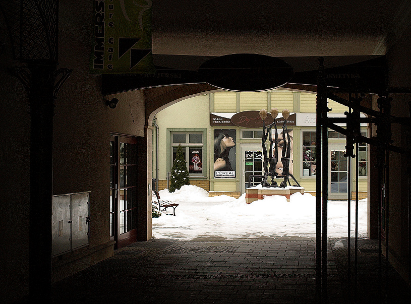 Zimowy Sopot, artystyczne podwórko na ul. Bohaterów Monte Cassino, 10.02. 2012